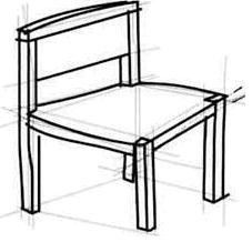 una silla. Es un primer apunte que refleja a grandes rasgos los elementos fundamentales del objeto y