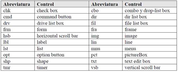 haya que utilizar ese nombre se sabrá exactamente a qué control corresponde. Un