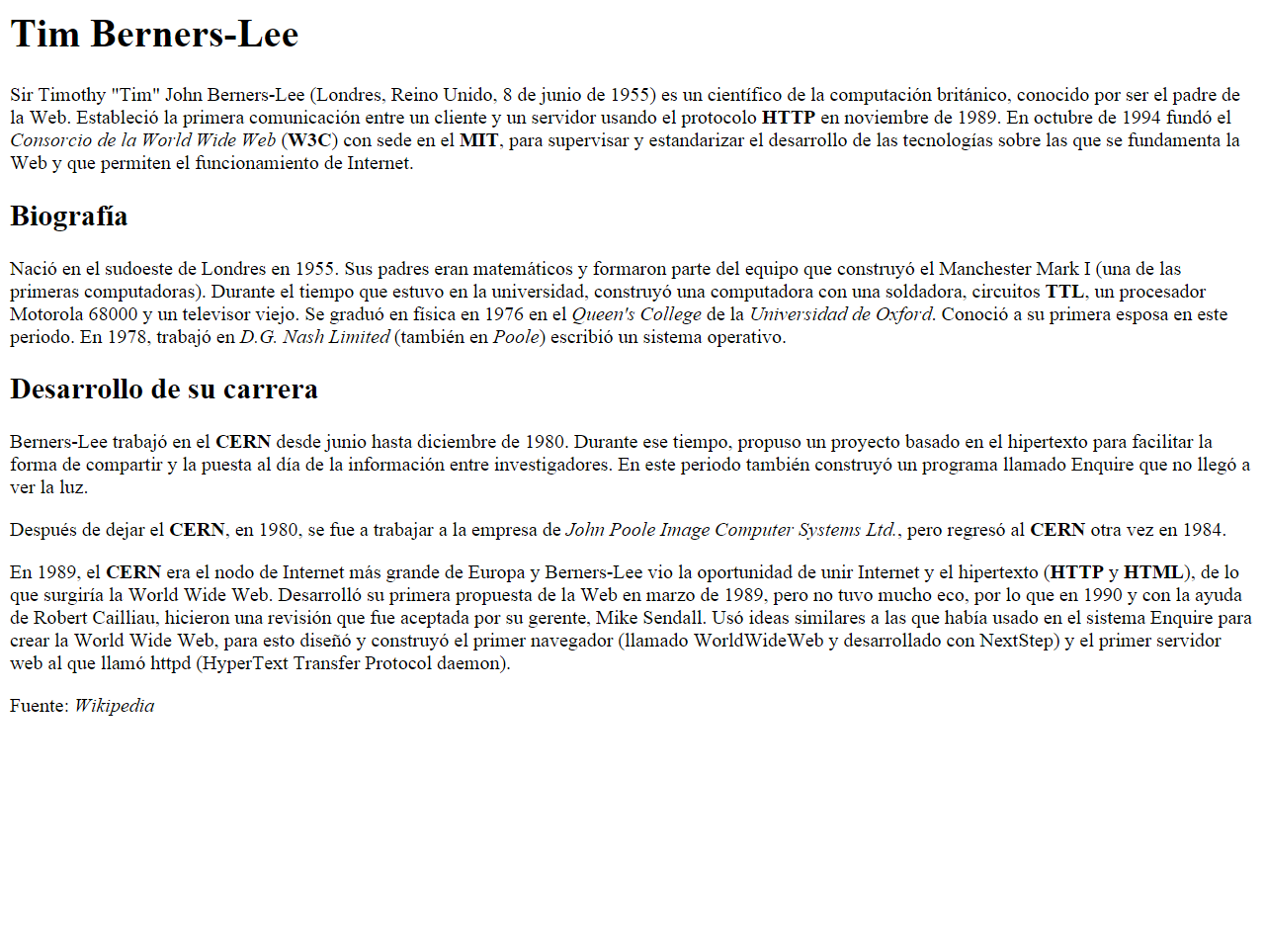 Tim Berners-Lee debe aparecer como texto enfatizado en toda la página.