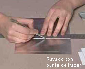 Antes de realizar cualquier corte sobre un material metálico, debemos trasladar las dimensiones y la forma de la pieza deseada al material.