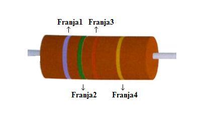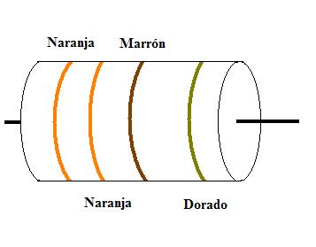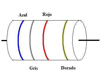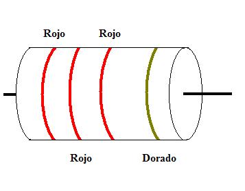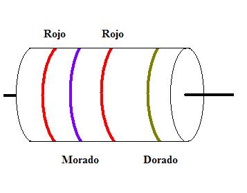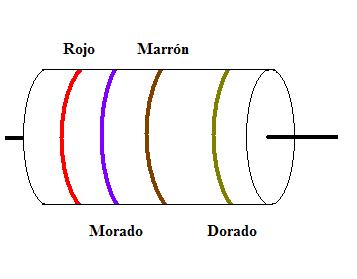 Veamos un ejemplo de como se encuentra el valor de una resistencia a partir de su código de colores. Sea, por ejemplo, la siguiente resistencia: