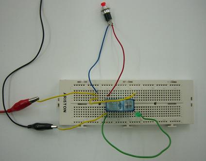 En esta primera práctica, vamos a usar el relé como interruptor. Tendremos un pulsador que al accionarlo, me enganchará el relé, y este cerrará un circuito que enciende un LED. Este será el esquema: