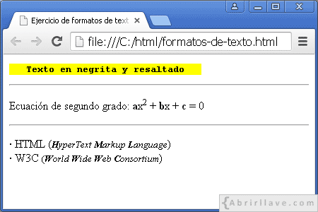 Escribir el código HTML necesario para ver lo siguiente en un navegador: