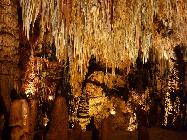 Detail of a stalactite in the Valporquero cave. De César Acebal en Wikimedia Commons. Licencia CC-BY-SA.