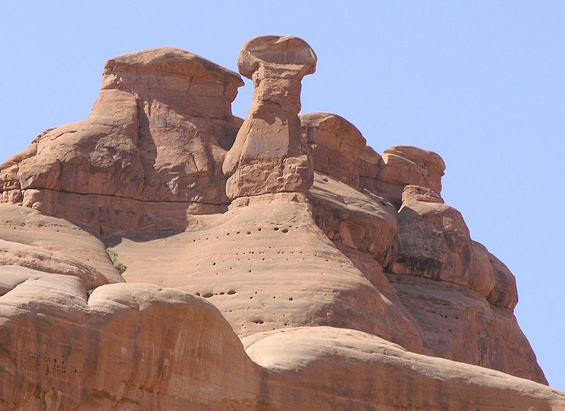Rock structures in Entrada Sandstone along Park Avenue in Arches NP. De Mav en Wikimedia Commons. Licenza CC-BY-SA.