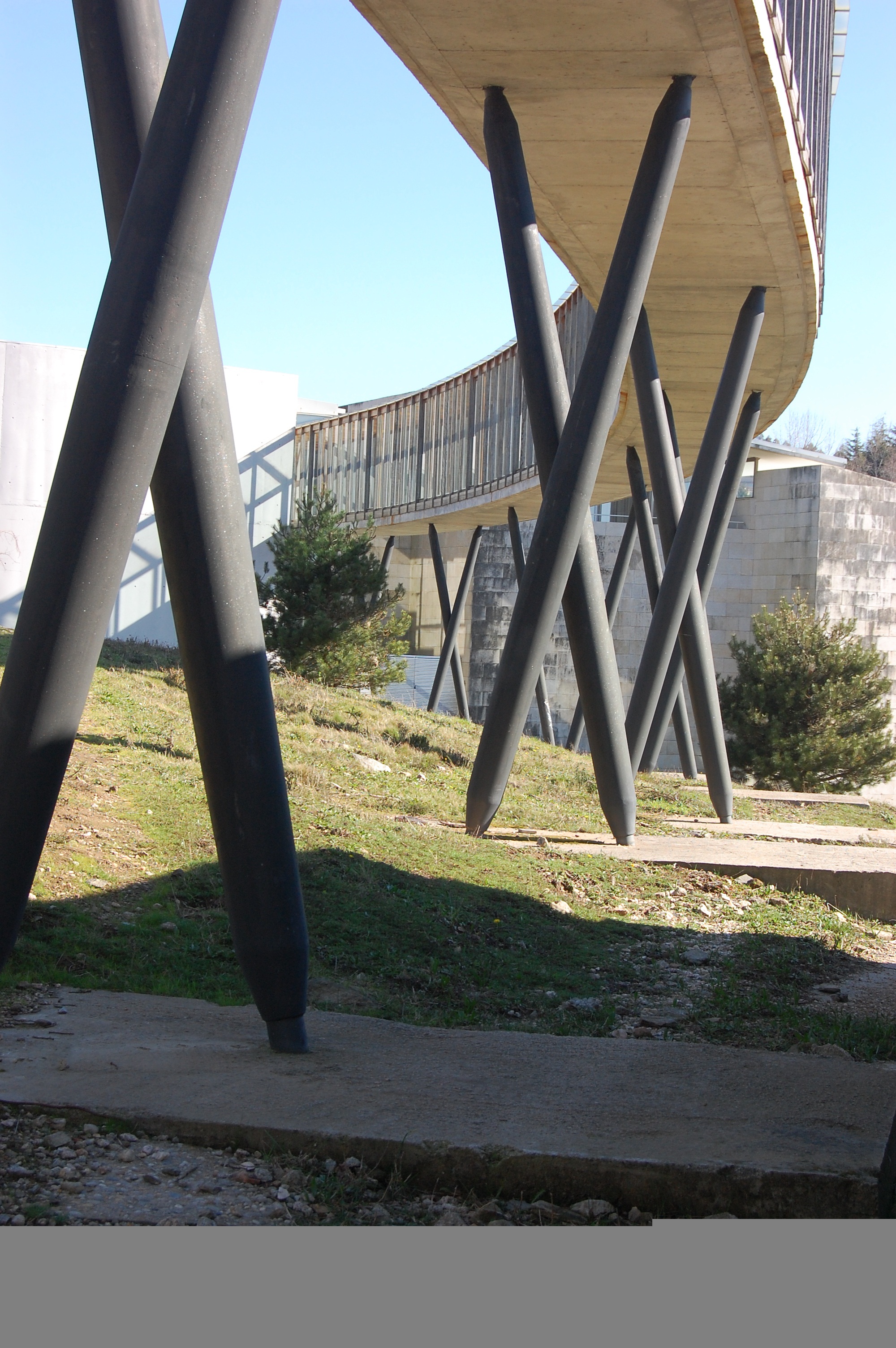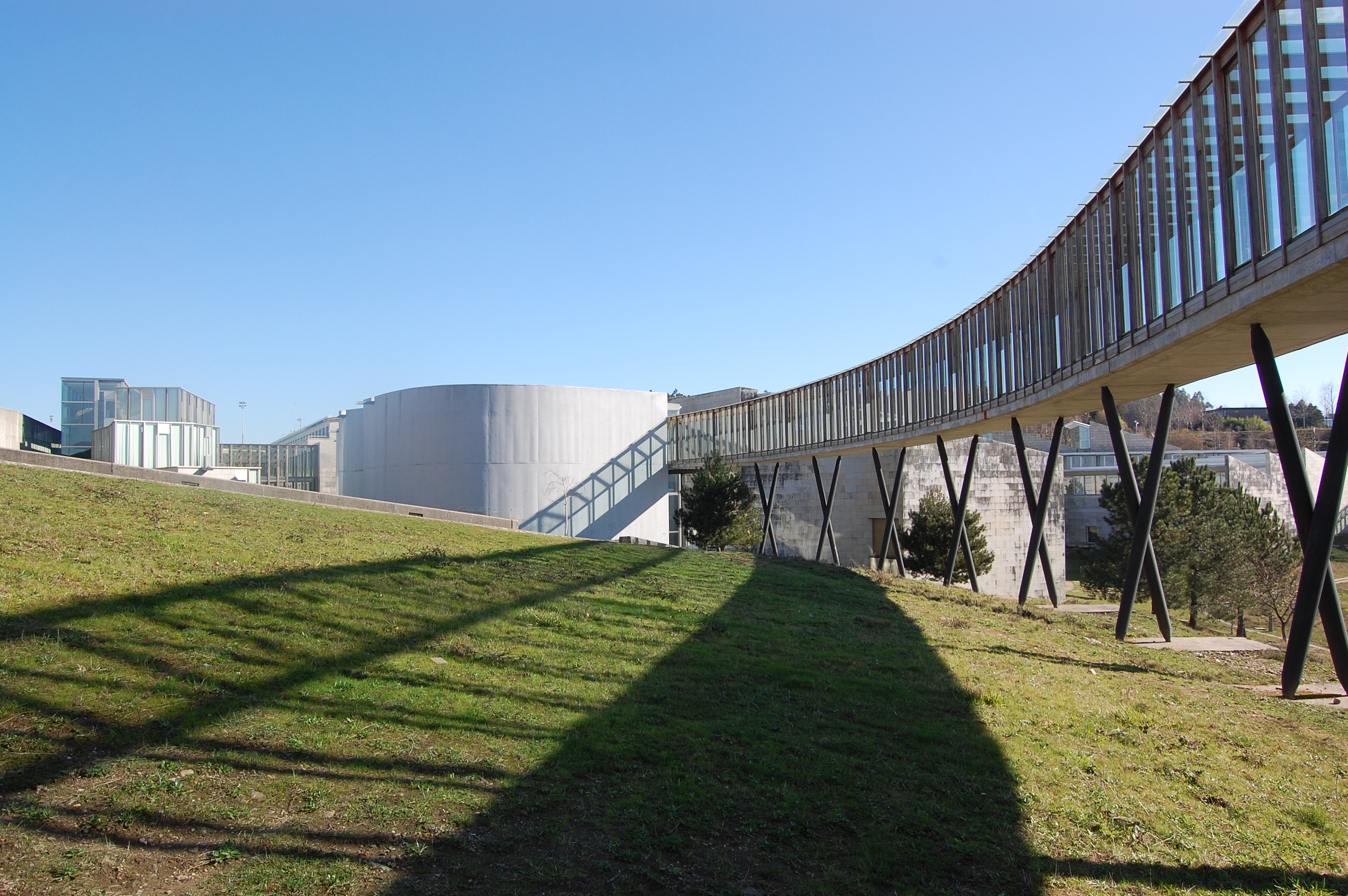 Soportes metálicos sujetando pasarela peatonal .(Campus Vigo).