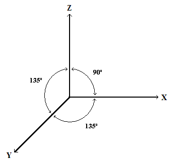 - Para el eje Y, que forma 135º con los eje Z y X,