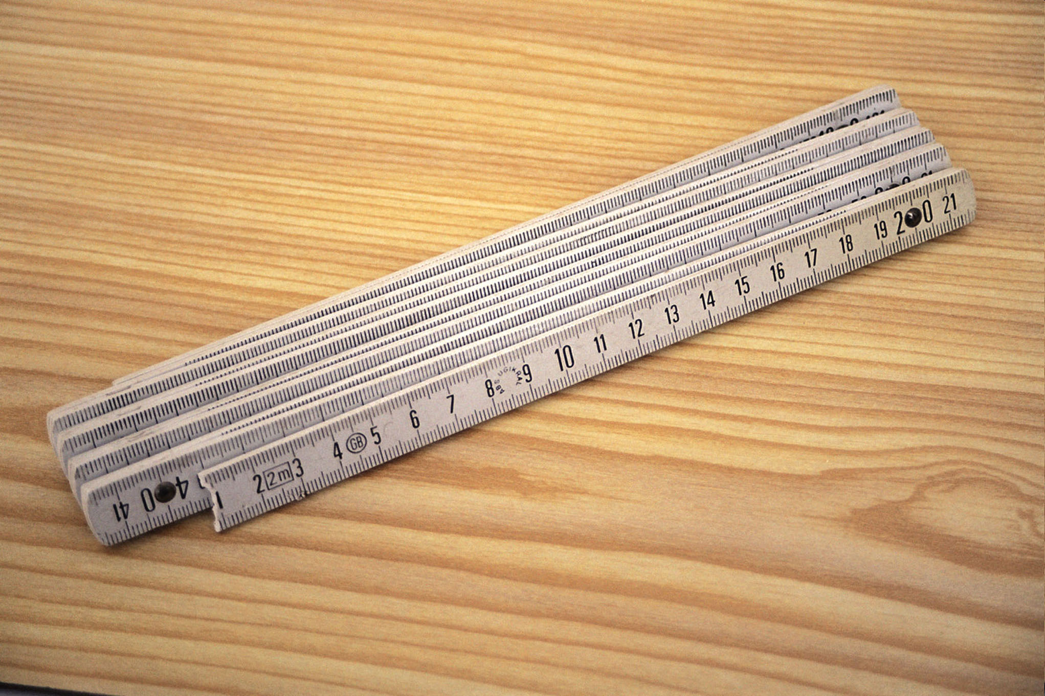 Metro de carpintero. Se emplea para medir piezas de madera, ya que, al ser extensible, resulta cómodo.