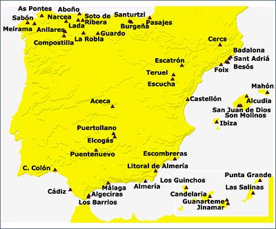 En nuestro país hay en funcionamiento aproximadamente 200 centrales térmicas, con una potencia total instalada de más de 27.000 MW. La potencia media de estas centrales, por lo tanto, es de unos 140 MW. En 2000, las centrales térmicas produjeron más de 125 TWh, el 56% del total. El mapa representa las centrales con más de 20 MW de potencia.